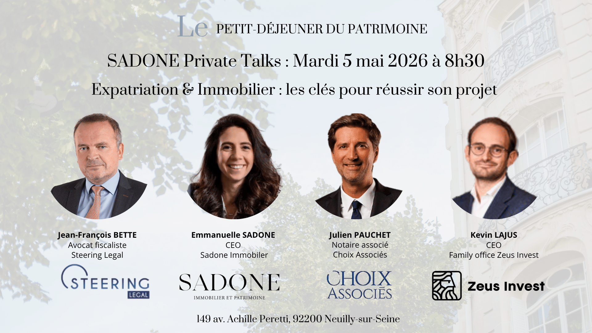 Expatriation & Immobilier : les clés pour réussir son projet Nous avons le plaisir de vous convier à une nouvelle édition des SADONE Private Talks, un moment d’échange privilégié et confidentiel autour d’un petit-déjeuner, dédié à la réflexion patrimoniale et aux grandes stratégies d’investissement. L’objectif : vous apporter des clés […]